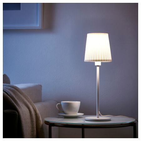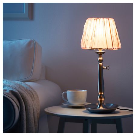 Абажур из ткани создает рассеянное декоративное освещение. Основание настольной лампы продается отдельно. Высота: 15 см. Диаметр: 14 см. Кольцо абажура: Сталь, Порошковое покрытие. Абажур: Полистирол, 100% полиэстер. Адаптер: Полипропилен.