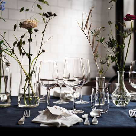 По блеску и прозрачности этот бокал трудно отличить от хрустального, хотя он изготовлен из стекла без добавления свинца. Бокалы издают приятный звук, когда ими чокаются.