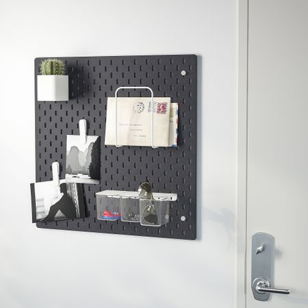 Если вы используете настенную панель как разделитель стола или элемент отдельно стоящей комбинации АЛЬГОТ, то вещи на хранение можно развесить с обеих сторон панели. Размер: 56x56 см