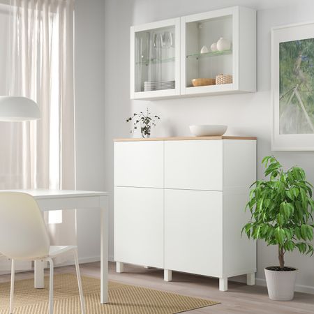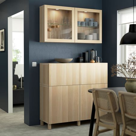 Комбинация для хранения с дверцами, под беленый дуб/ХАНВИКЕН/СТУББАРП под беленый дуб 180x42x74 см IKEA BESTÅ БЕСТО