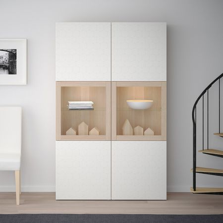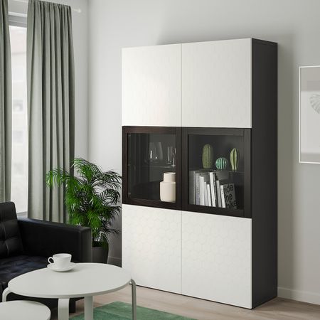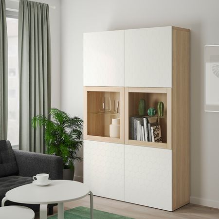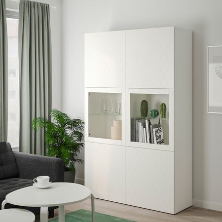 Шкаф + раздвижные стеклянные дверцы, бежевый 120x140 см IKEA IDÅSEN ИДОСЕН