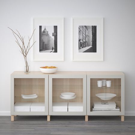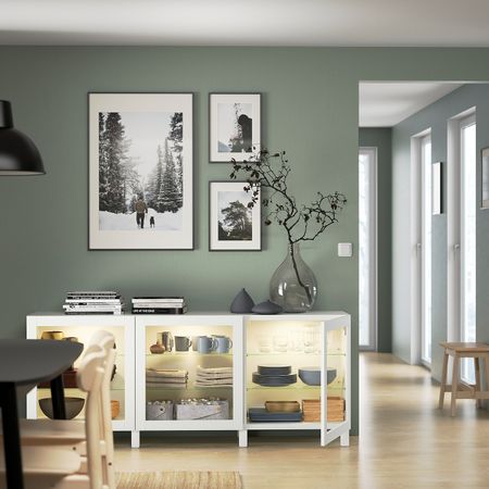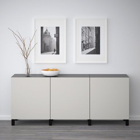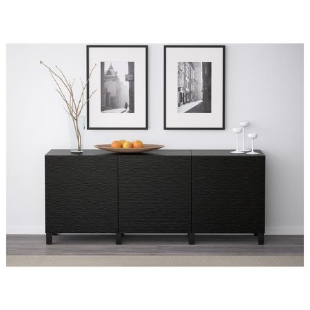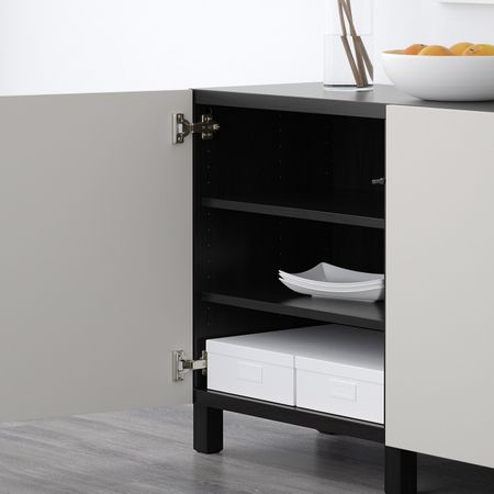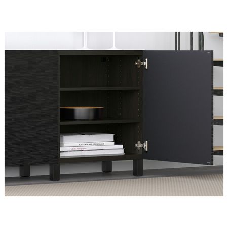 БЕСТО 892.763.78 Комбинация для хранения с дверцами, черно-коричневый, Халлставик сине-зеленый (180x40x74 см)