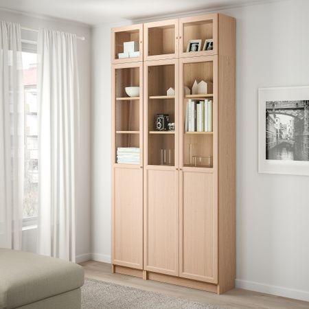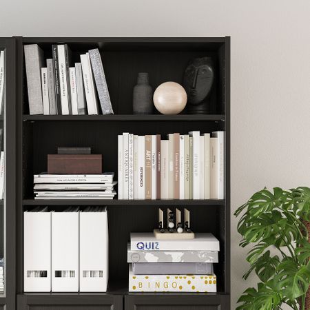 Стеллаж, панельные, стеклянные двери, 160x30x202 см, черно-коричневый IKEA BILLY БИЛЛИ, OXBERG ОКСБЕРГ