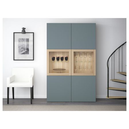 БЕСТО 391.388.17 Комбинация для хранения со стеклянными дверцами, белый, Вальвикен серо-бирюзовый, прозрачное стекло (120x40x192 см)
