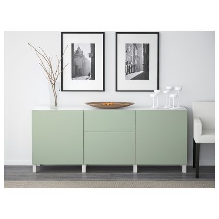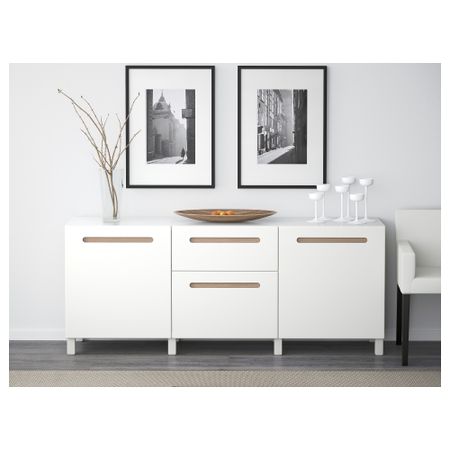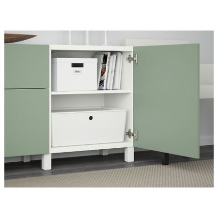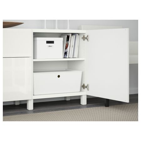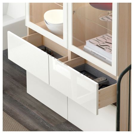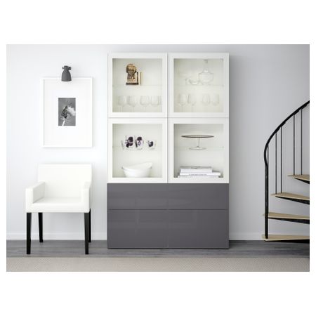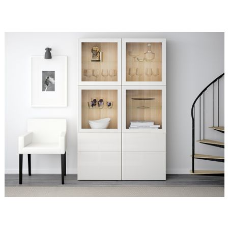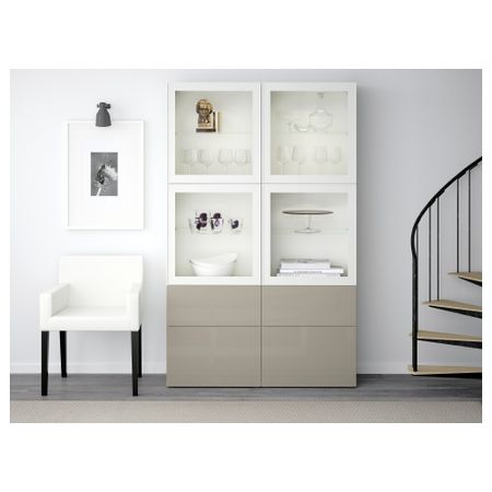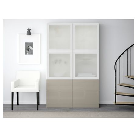 БЕСТО 490.900.56 Комбинация для хранения со стеклянными дверцами, белый, Сельсвикен глянцевый/бежевый прозрачное стекло (120x40x192 см)