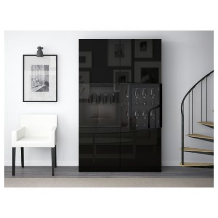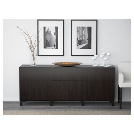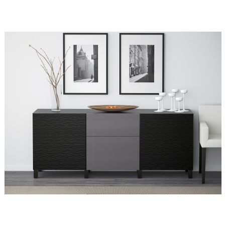 БЕСТО 490.895.00 Комбинация для хранения с ящиками, черно-коричневый, Сельсвикен глянцевый/коричневый (180x40x74 см)