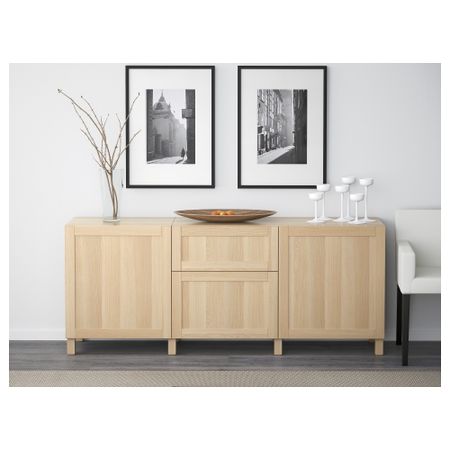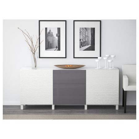 Благодаря интегрированному нажимному механизму ящики и дверцы открываются легким нажатием. Ножки придают комбинации БЕСТО более легкий вид, поднимая модули на полом. Кроме того, это упрощает уборку. Размер: 180x40x74 см