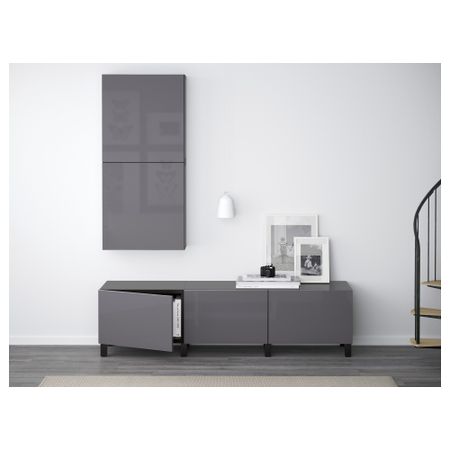 БЕСТО 790.725.60 Комбинация для хранения с ящиками, черно-коричневый, Сельсвикен глянцевый/черный (180x40x48 см)