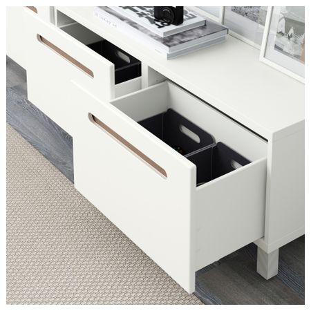 Благодаря доводчикам ящики закрываются плавно и бесшумно Ножки придают комбинации БЕСТО более легкий вид, поднимая модули на полом. Кроме того, это упрощает уборку. Эту мебель необходимо крепить к стене с помощью прилагаемого стенного крепежа. Размер: 180x40x48 см