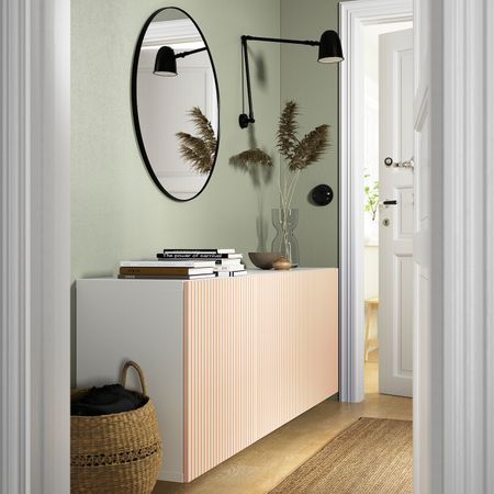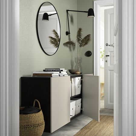 Съемные полки; устанавливайте на разном уровне в соответствии с необходимостью. Отделка из шпона. Конструкция петель позволяет отрегулировать и выровнять дверцу по вертикали и горизонтали.