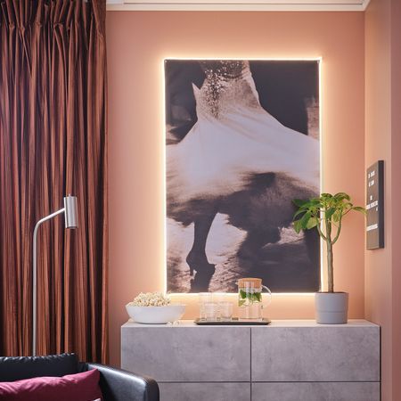 Благодаря слегка текстурированной поверхности фасад КЭЛЛЬВИКЕН напоминает бетон.Стеклянные дверцы позволяют продемонстрировать содержимое шкафа, защищая его от пыли.Ящики со встроенным нажимным механизмом открываются легким нажатием.