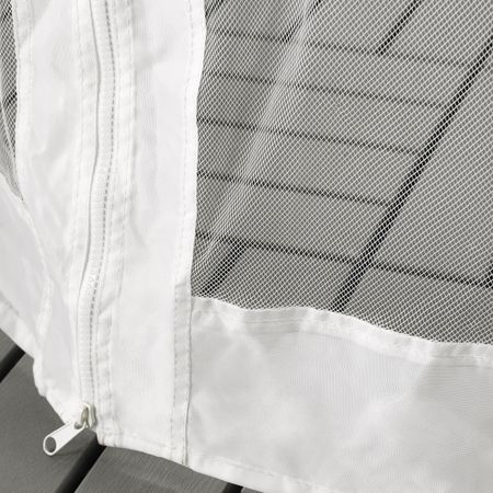Ткань обеспечивает отличную защиту от УФ-лучей. Коэффициент защиты (UPF): 50+. Ткань с таким коэффициентом защиты блокирует 98 % ультрафиолетового излучения.Легко поддерживать в чистоте, так как ткань можно снять и постирать в стиральной машине.
