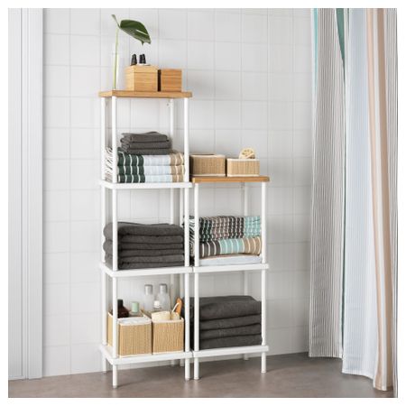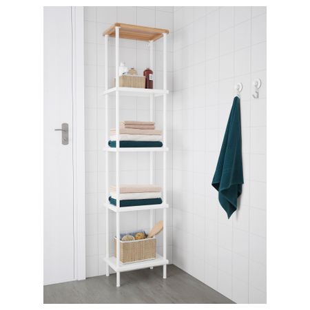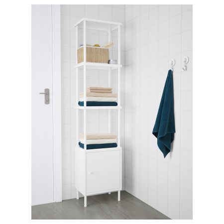 В шкафчике с дверцей можно хранить все, что вы не хотите оставлять на виду, а на открытых полках – чистые полотенца и вещи, которые должны быть всегда под рукой. На полки можно положить 8 банных полотенец. Размер: 40x27x134 см