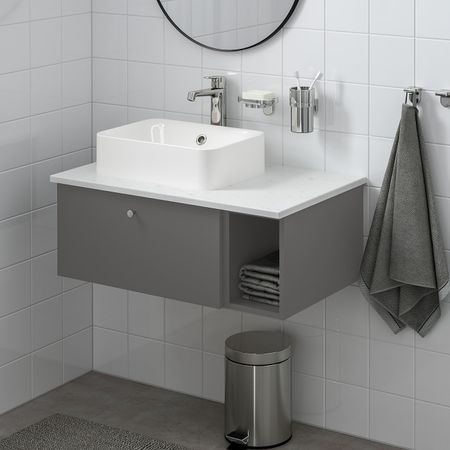 Навесной шкаф с 2 полками, дверцами, серый, серый каркас, 80x17x75 см IKEA BEGIVENHET БЕГИВЕНХЕТ