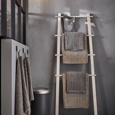 Эта необычная, похожая на лестницу подставка для полотенец из мелкозернистого массива березы — оригинальное решение для сушки и хранения полотенец.
