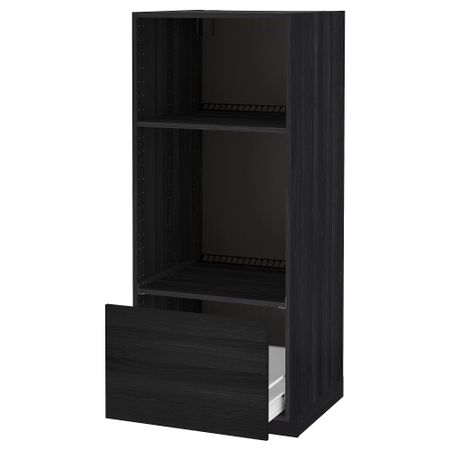 Напольный шкаф для варочной панели, ящик, полка, дверцы МЕТОД / ФОРВАРА, черный, Веддинге белый (60x60 см)
