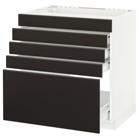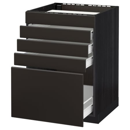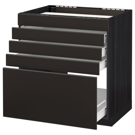 Напольный шкаф для варочной панели, ящик, полка, 2 дверцы МЕТОД / ФОРВАРА, черный, Веддинге белый (80x60 см)