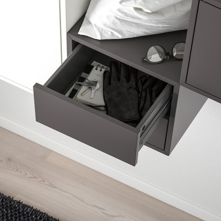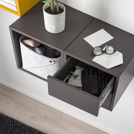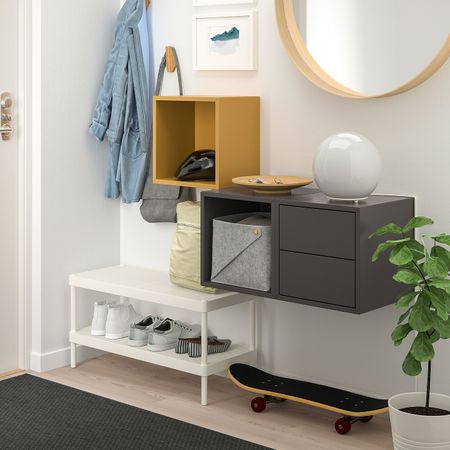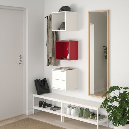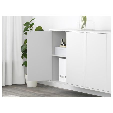 Настенная полка ЭКЕТ позволяет сэкономить пространство на полу и максимально эффективно использовать стену.Комбинируйте открытое и закрытое хранение в зависимости от потребностей.Дверца со встроенным нажимным механизмом открывается легким нажатием.