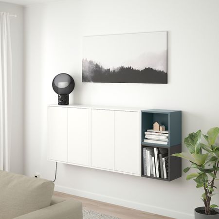 Комбинация настенных шкафов, белый, темно-серый/серо-бирюзовый 175x25x70 см IKEA EKET ЭКЕТ