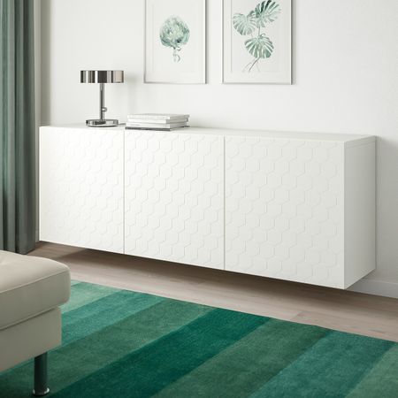Комбинация для хранения с дверцами/ящ, белый/ХАНВИКЕН/СТУББАРП белый прозрачное стекло 120x42x240 см IKEA BESTÅ БЕСТО