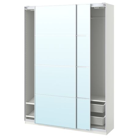 Гардероб, белый, Сэккен матовое стекло 150x44x236 см IKEA ПАКС
