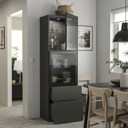Комбинация д/хранения+стекл дверц, темно-серый/прозрачное стекло