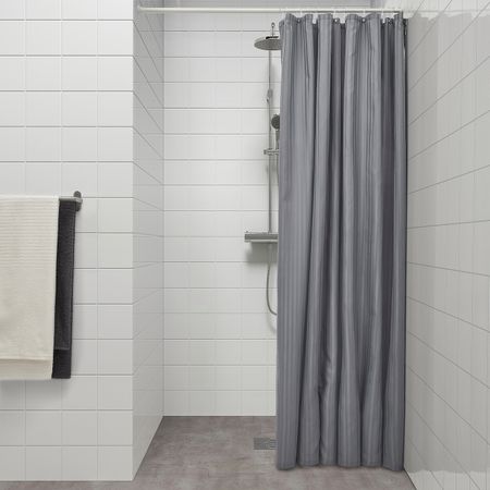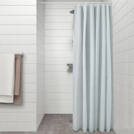 Плотная ткань с водоотталкивающим покрытием.Ткань изготовлена из переработанного полиэстера. Использование переработанных материалов делает нас еще на шаг ближе к более экологичному будущему.Можно дополнить кольцами и штангой для шторы в ванную.