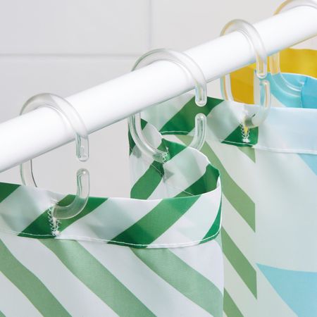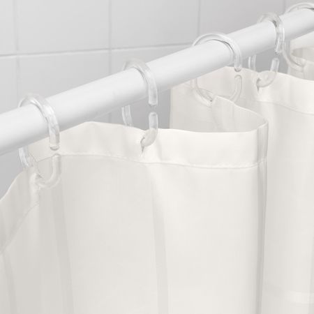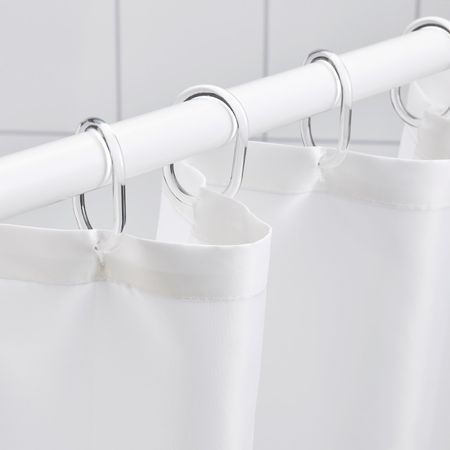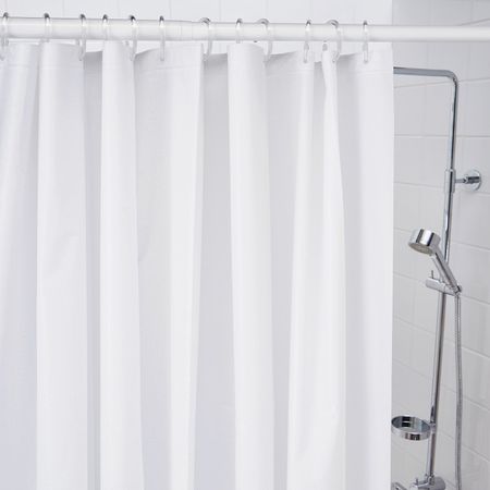Плотная ткань с водоотталкивающим покрытием.Ткань изготовлена из переработанного полиэстера. Использование переработанных материалов делает нас еще на шаг ближе к более экологичному будущему.Можно дополнить кольцами и штангой для шторы в ванную.