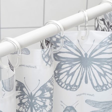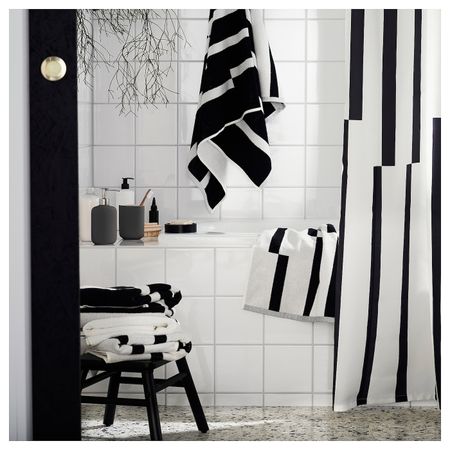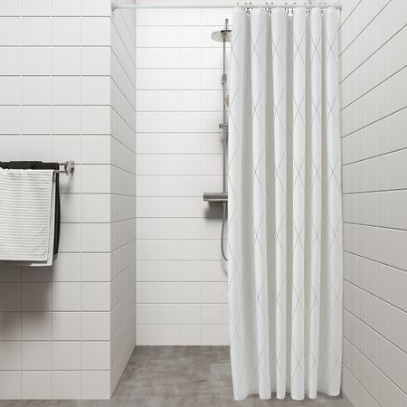 Штора для ванной, белый/темно-синий 180x200 см IKEA NYCKELN НЮККЕЛЬН