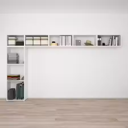 Обустроить внутреннее пространство шкафа помогут элементы серии ХЭЛПА, а организовать порядок за его пределами позволят аксессуары серии ЛЭТТХЕТ. С помощью прилагающихся зажимов можно соединить несколько каркасов ОПХУС.