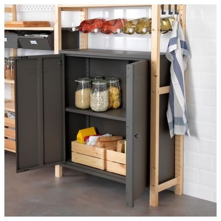 Из предметов серии АЛЬГОТ можно создавать различные комбинации, которые можно в дальнейшем адаптировать к потребностям хранения и возможностям помещения. Можно также использовать в ванной и других помещениях с повышенным уровнем влажности. Размер: 66x41x197 см