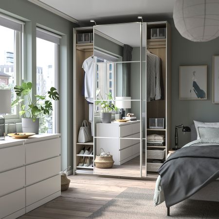 Дверь раздвижная, комбинация IKEA MEHAMN МЕХАМН, AULI АУЛИ, SKYTTA