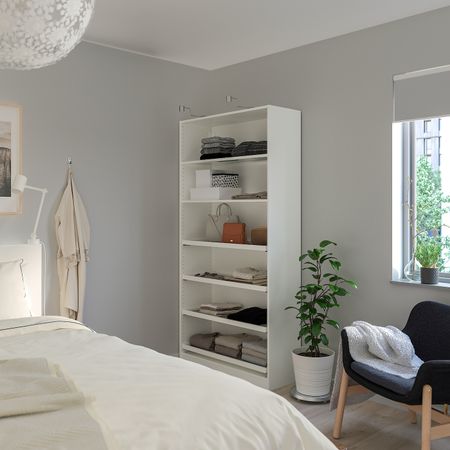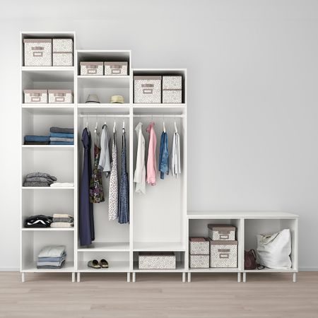 Комбинируя ящики, дверцы, фасады, наполнение, верхние и нижние планки легко составить систему хранения ПЛАТСА так, как хочется вам.Каркасы легко соединяются до щелчка, инструменты не требуется.