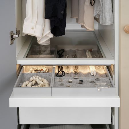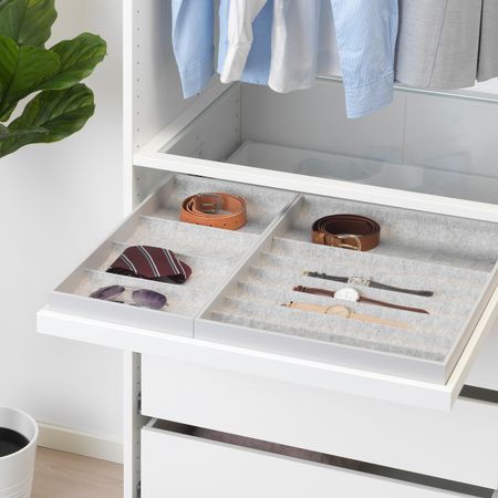 Конечно, вставка такого дизайна идеально подходит для хранения часов и свернутых галстуков, но другие украшения и аксессуары тоже найдут здесь достойное место.В отделениях разного размера у каждого аксессуара будет свое место.