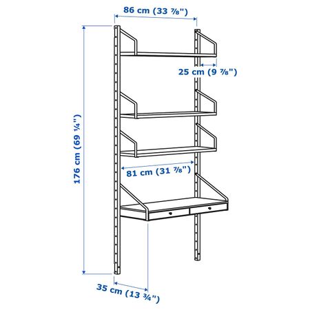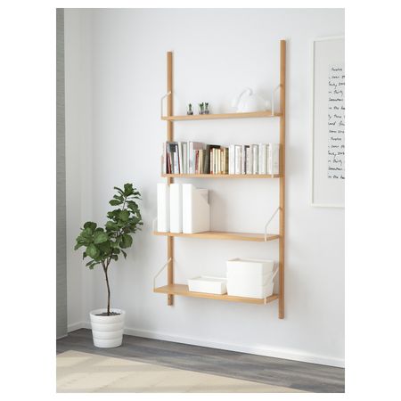 Рабочее место – комбинация, бамбук, белый 213x35x176 см IKEA СВАЛЬНЭС