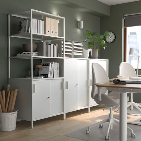 Двусторонний шкаф ТРОТТЕН с раздвижными дверцами обеспечивает доступ к вещам с обеих сторон, поэтому его особенно удобно использовать как разделитель помещения.