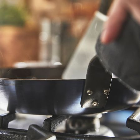 На этой сковороде можно приготовить разные блюда, включая мясной соус, блины или свежую спаржу.