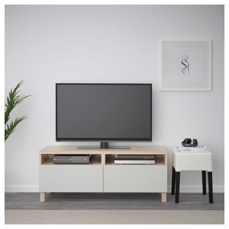 БЕСТО 591.983.01 Тумба для ТВ с ящиками, белый, Инвикен черно-коричневый (120x40x48 см)