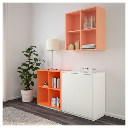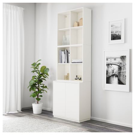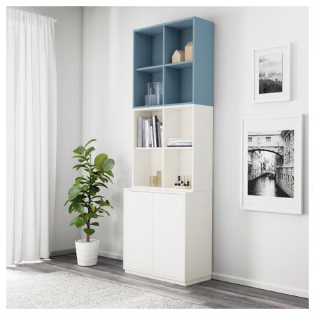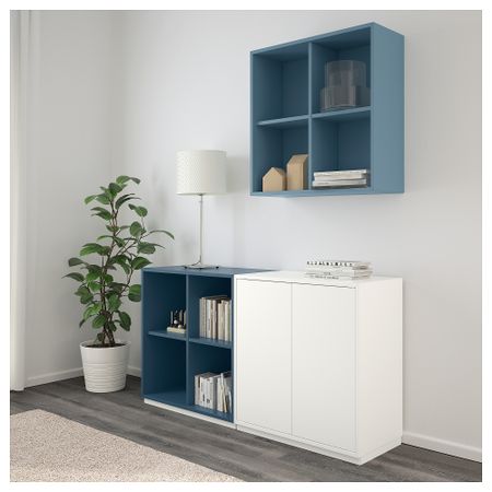 БЕСТО 392.064.96 Комбинация для хранения со стеклянными дверцами, белый Халлставик, темно-синий прозрачное стекло (120x40x192 см)