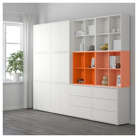 Массив дерева.Съемные полки позволяют регулировать пространство.1 несъемная полка для большей устойчивости.Под съемной нижней полкой можно спрятать провода и удлинители.Регулируемые ножки; обеспечивают устойчивость даже на неровном полу.