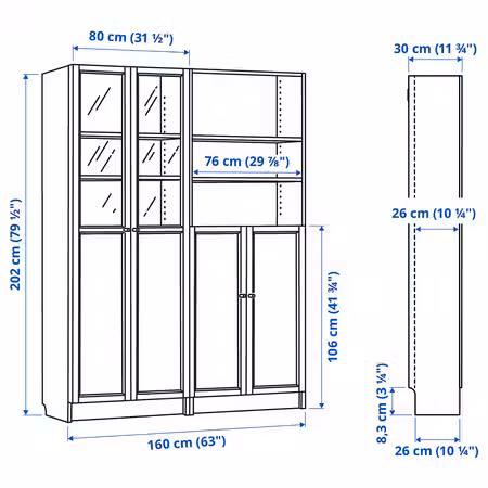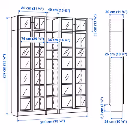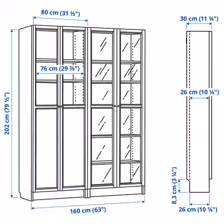BILLY / OXBERG 795.819.01 Стеллаж + стекл. двери/доп. модуль