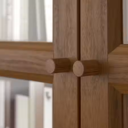 Стеллаж со стеклянными дверцами, под дуб/прозрачное стекло