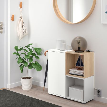 Комбинируйте открытое и закрытое хранение в зависимости от потребностей.Низкая комбинация позволит создать удобное решение для хранения, например, под подоконником.Также можно использовать как скамью в спальне или холле.