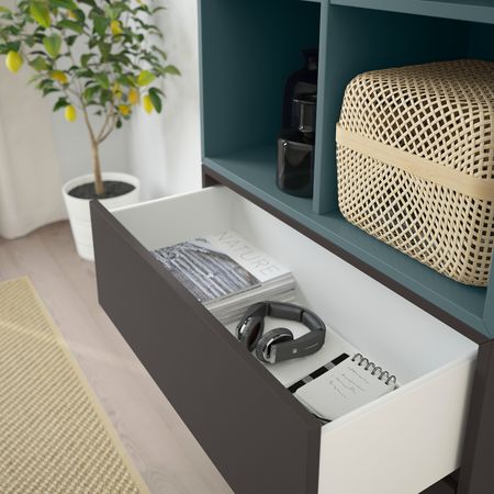 Низкая комбинация позволит создать удобное решение для хранения, например, под подоконником.Также можно использовать как скамью в спальне или холле.Деревянное основание придает комбинации ЭКЕТ стильный облик и упрощает уборку.