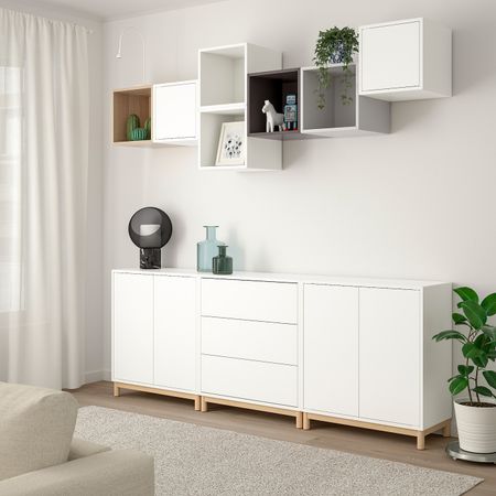 Комбинируйте открытое и закрытое хранение в зависимости от потребностей.Благодаря интегрированному нажимному механизму ящики и дверцы открываются легким нажатием.