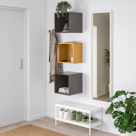 Настенная полка ЭКЕТ позволяет сэкономить пространство на полу и максимально эффективно использовать стену.Ассиметричное расположение секций подчеркнет индивидуальность решения для хранения.