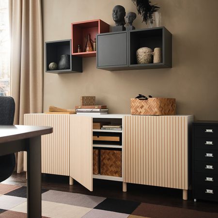 Массив сосны – натуральный материал, который со временем выглядит только лучше.Можно использовать как часть системы для хранения ИВАР или как отдельно стоящий предмет мебели.