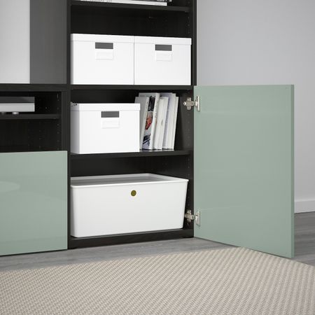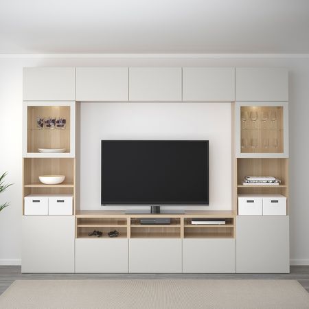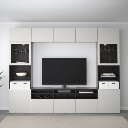Шкаф для ТВ, комбинированный, стекляные дверцы БЕСТО, черно-коричневый Инвикен, ясеневый шпон прозрачное стекло (240x40x230 см)