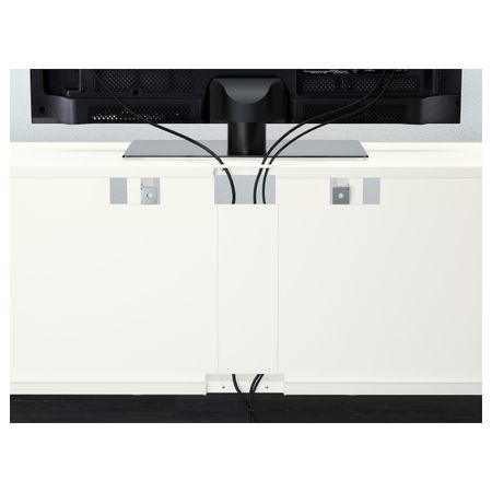 Ящики со встроенным нажимным механизмом открываются легким нажатием. Благодаря нескольким отверстиям на задней панели тумбы под ТВ провода от телевизора и других устройств всегда будут под рукой, но не на виду.