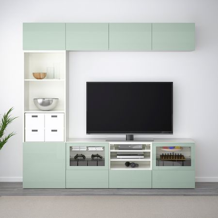 Шкаф для ТВ, комбинированный, стекляные дверцы, под беленый дуб, Лаппвикен светло-серый прозрачное стекло, 240x40x128 см IKEA